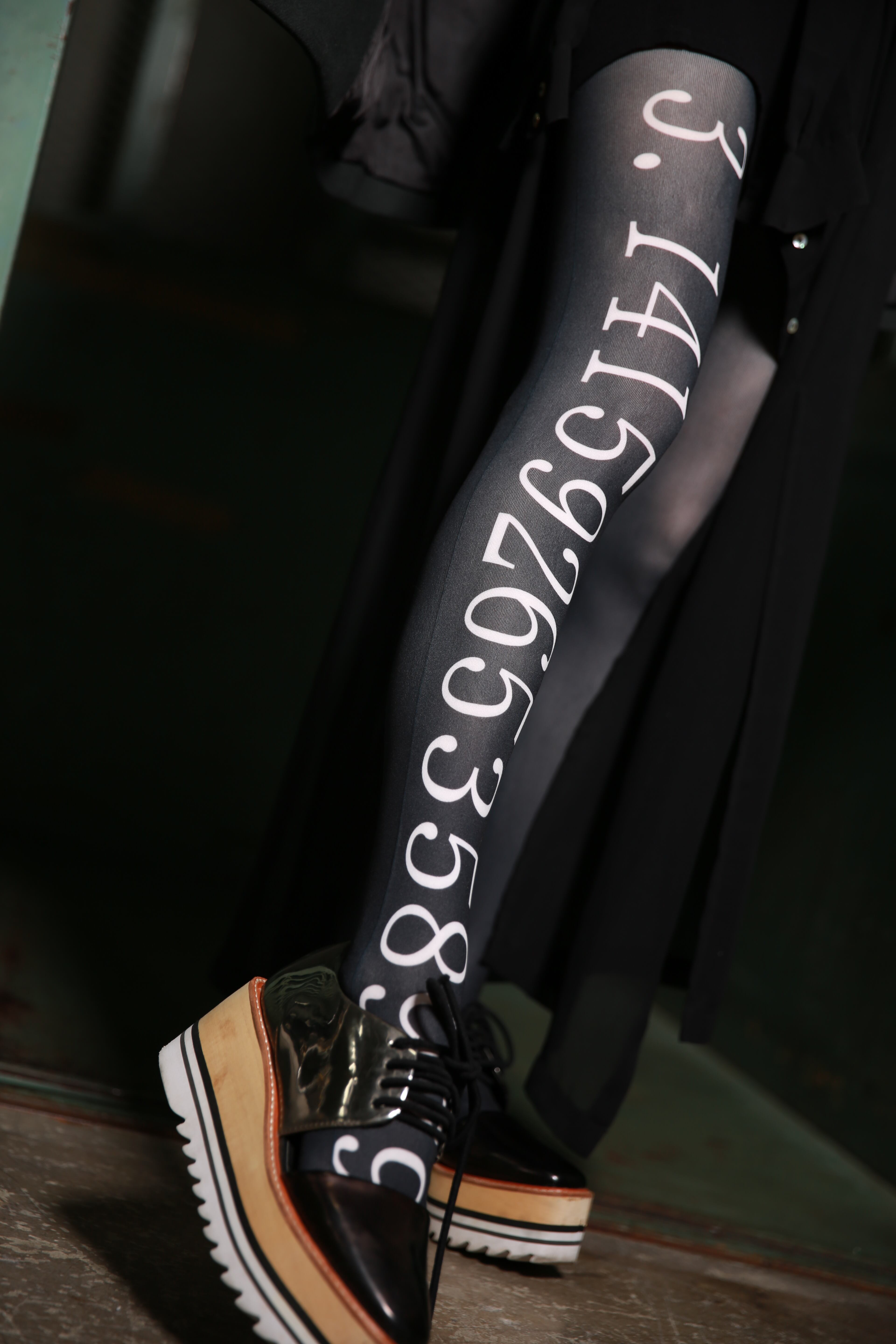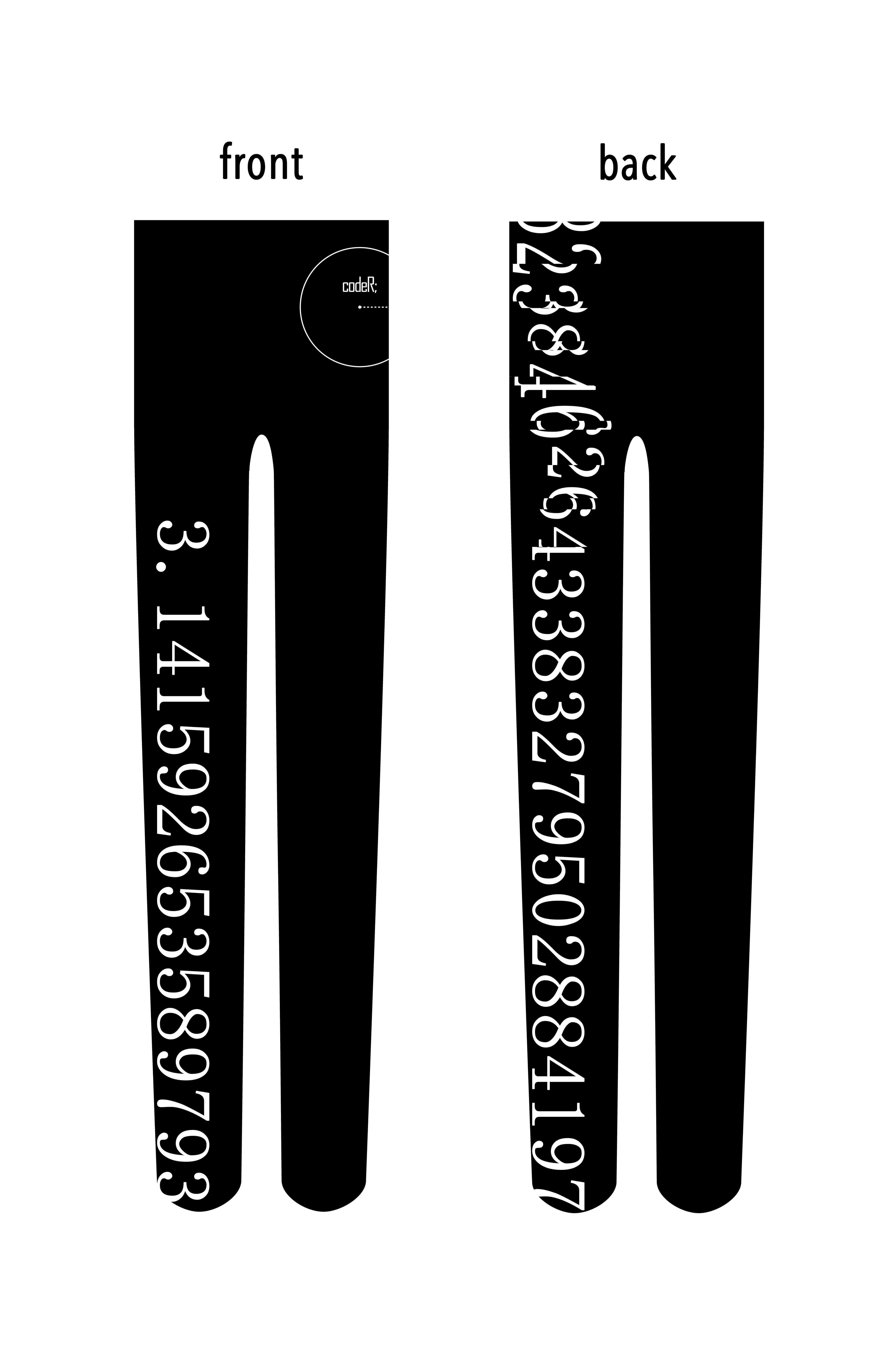 円周率が右足前から左足後ろへとひたすらに続いたデザイン。