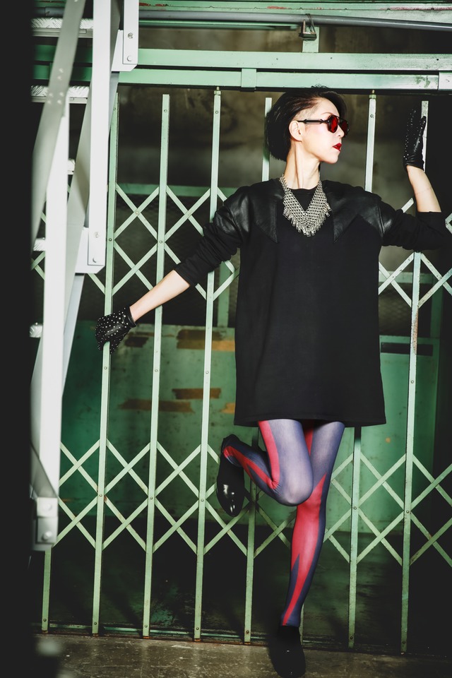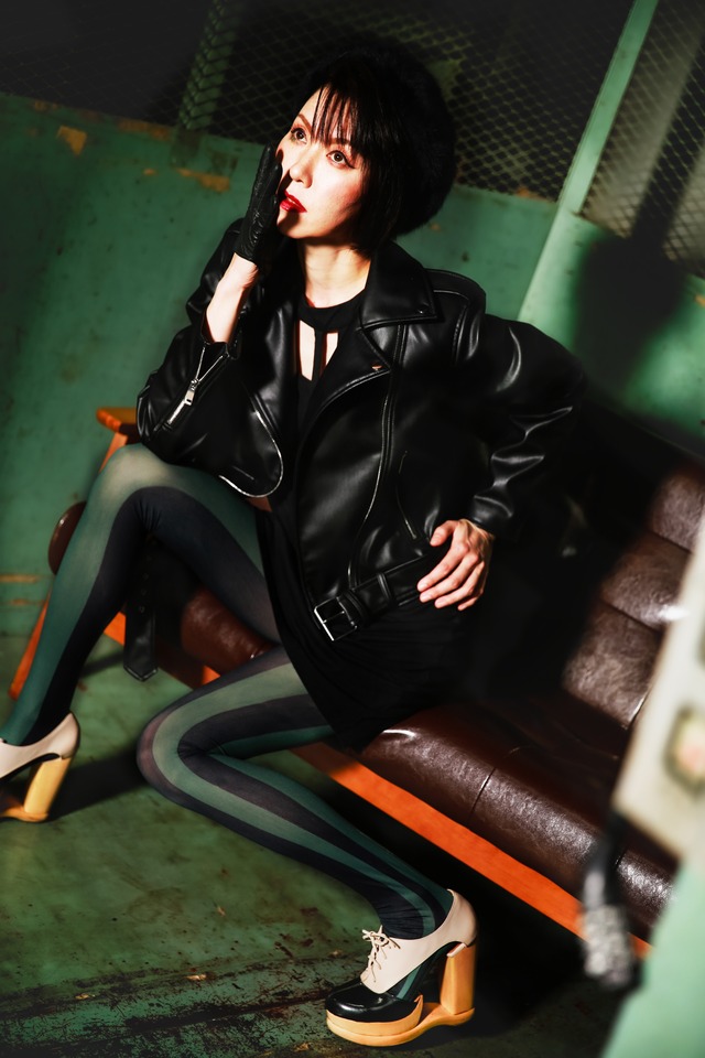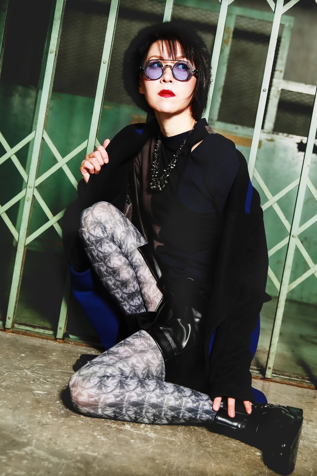 イナズマデザインのROCKテイストな一本。 後ろ足首のロゴがポイント。 モノトーンコーデに特におすすめなレッグウェアです。 素材:ポリエステル91% / ポリウレタン9% 厚さ:80デニール 印刷方式:両面昇華転写 サイズ:M-Lサイズ ヒップ:85cm~98cm 置き寸:約95cm 日本製 モデル:アサヒキャナコ(バックドロップシンデレラ)/170cm 写真:新倉映見(えみだむ)
